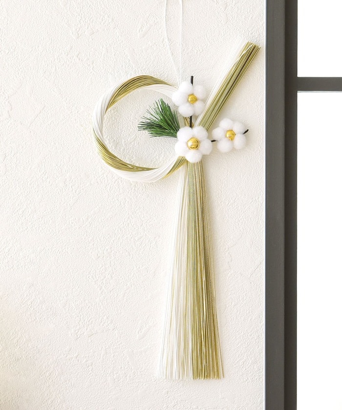 神様をお迎えする準備として欠かせないしめ縄飾りは、紅白やゴールドの水引を使用した華やかなデザインが登場しました。こちらの商品は紐付きなので、フックなどに掛けて簡単に飾ることができます。