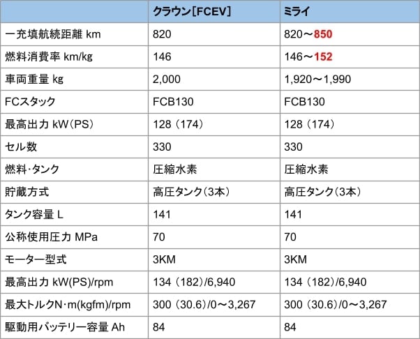 2. クラウンセダンとミライの性能