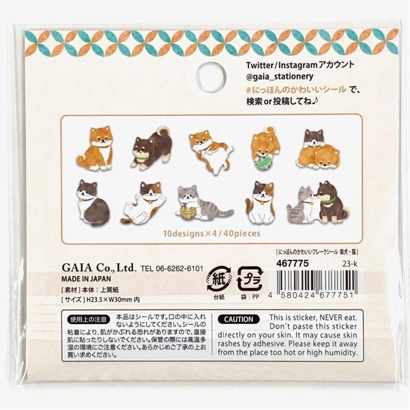 こちらは「柴犬・猫」デザインのシールです。日本らしい犬である「柴犬」と、三毛猫といった「日本猫」のシールがセットになっています。