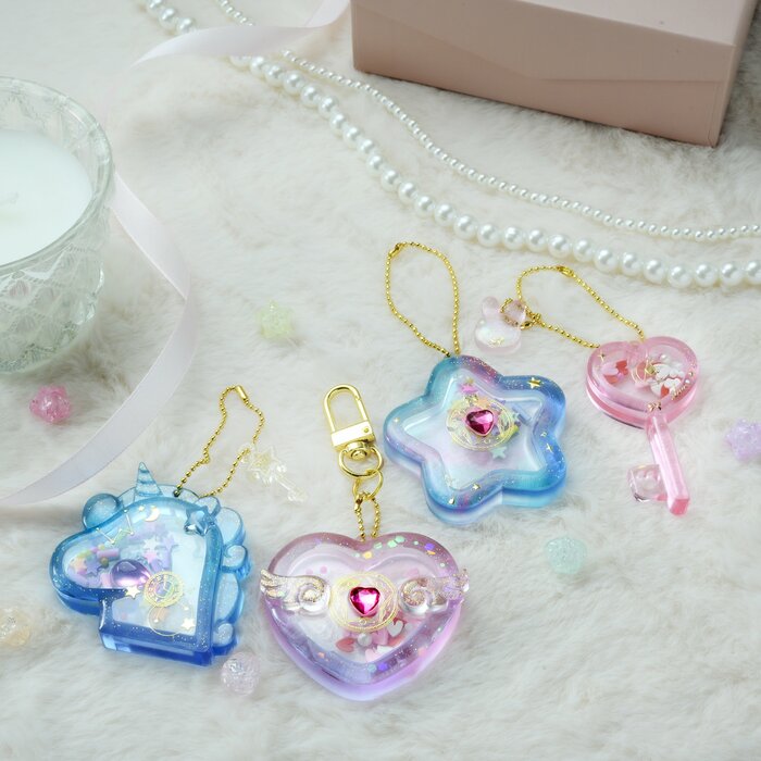 セットには、ハートやユニコーンのゆめかわなオリジナルシリコン型とともに、星やリボンなどのレジンの小物パーツ用の型も入っています。