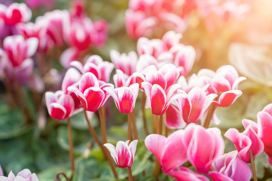 晩秋から翌春にかけて、色とりどりな花を咲かせるシクラメン。贈答品としても好まれる、気品あふれるお花です。