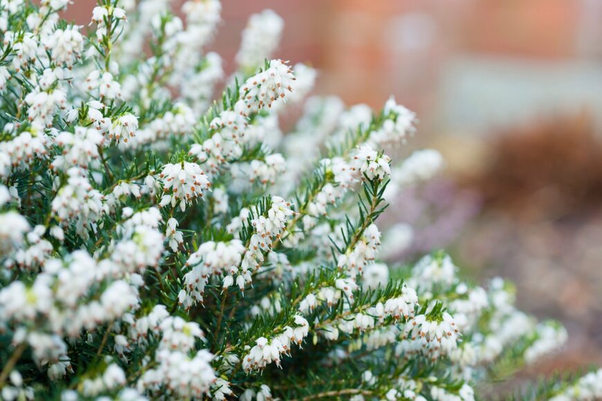 スズラン・エリカ(クリスマス・エリカ)は、白い小花を枝いっぱいに咲かせる樹木。雪が積もっているようなロマンチックな雰囲気から、冬のギフトとして高い人気を誇っています。
