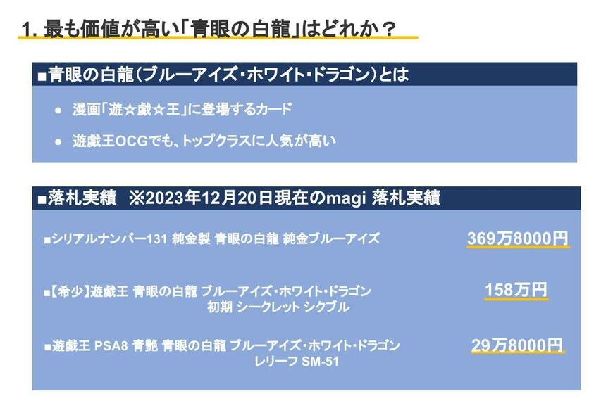 1. 最も価値が高い「青眼の白龍」はどれか?