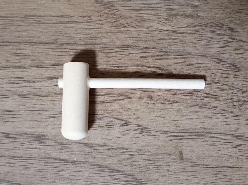 こちらは杵です。お餅をつく側が、きちんと丸くなっています。本物とそっくりです。サイズは、H7cm×W3.5cm×D1cmです。