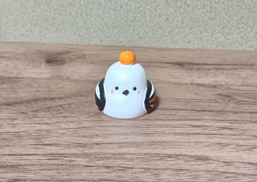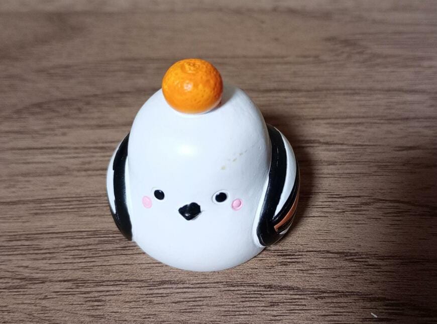 2023年12月には、お正月らしい「鏡餅」のコスプレをしたシマエナガの置物が販売されているのを発見しました。