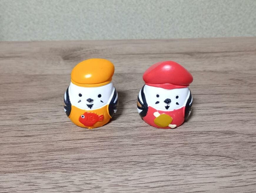 鏡餅シマエナガだけでなく、七福神デザインのシマエナガもセリアでは販売されています。こちらは、恵比寿天と大黒天です。