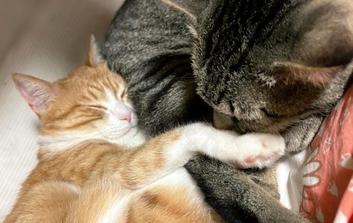 「捨て猫時代の記憶はきっと、ママさん家族との幸せな記憶で上書きされているから大丈夫!優しい家族に出会えて本当に幸せ…なんて素敵なんでしょう」