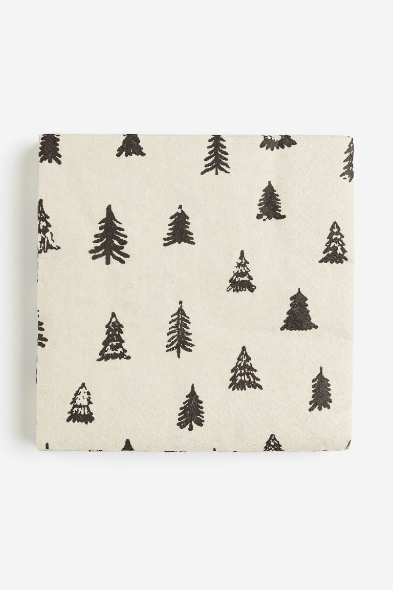 全体にツリーの絵柄がプリントされたペーパーナプキン。テーブルにクリスマスらしさを添えてくれる、ホームパーティーや持ち寄りで活躍すること間違いなしのアイテムです。25組入りで299円のお手頃価格なのも嬉しいですね。