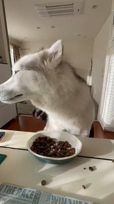 食べてくれない時の最終手段は「土下座」!?ダイニングテーブルで食事をするハスキー犬の、ほほえましい一コマがX(旧Twitter)で注目を集めています。
