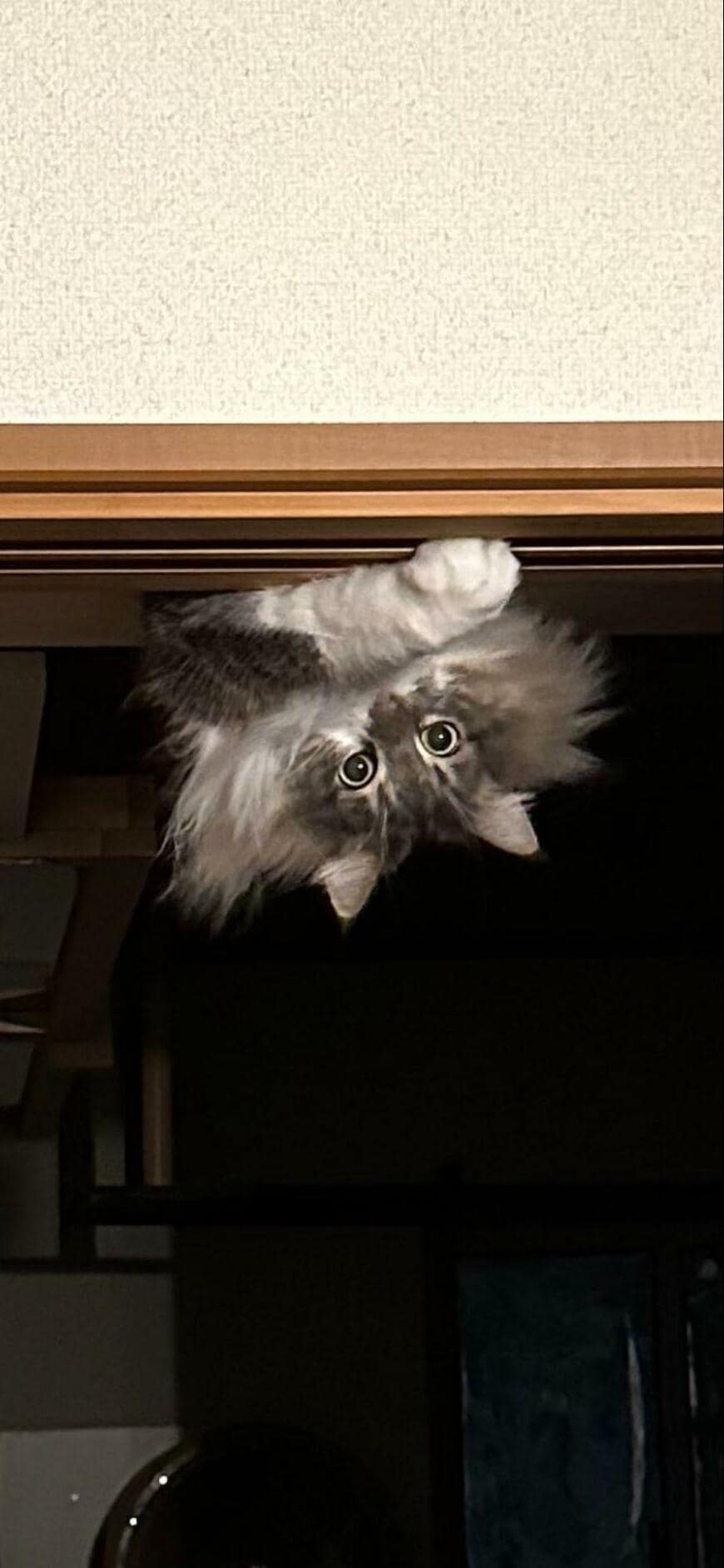 ママさんが思わずビックリ!天井から逆さまに生える猫ちゃんが、X(旧Twitter)で注目を集めています。