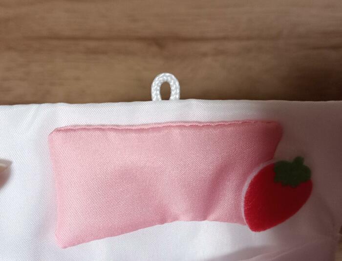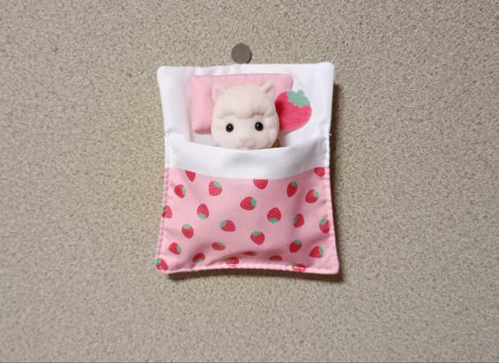 布団の中に、ぬいぐるみや人形をいれて活用します。布団の中には、ゴム紐もついているので、ぬいぐるみや人形をしっかりと固定できます。