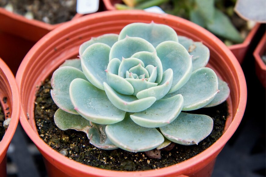 七福神は縁起のよい名前が特徴の多肉植物。エケベリア属の特徴であるロゼット型の葉が華やかで、紅葉するとピンク色の葉も楽しめます。休眠する冬は水やりを控えめにして乾燥気味に育てましょう。※参考価格:500~1000円前後(2~3号鉢)