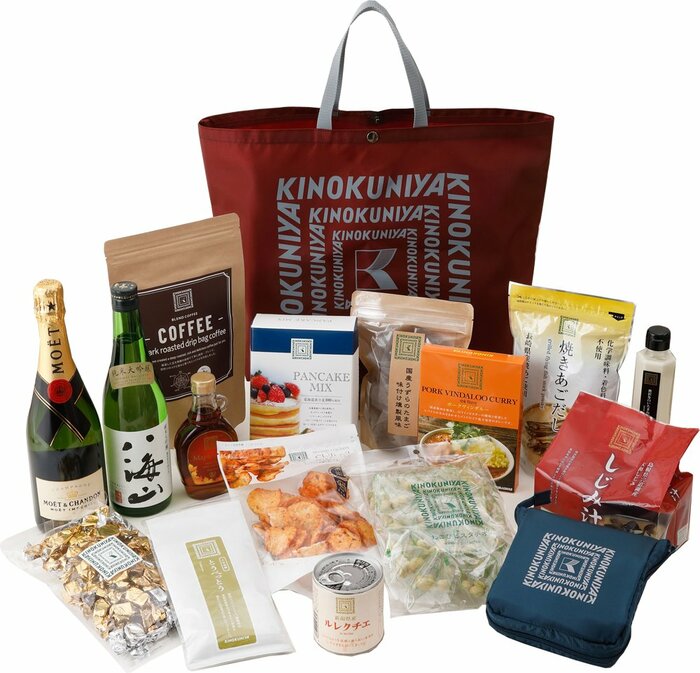 - セット内容:モエ・エ・シャンドン ブリュット アンペリアル、八海山 純米大吟醸、チョコレート ミルク・ダーク、とうべっとう、深煎りブレンドドリップバッグ200g、オーガニックメープルシロップ、パンケーキミックス、ラー油せんべい、ルレクチェ缶詰、国産うずらのたまご 味付け燻製風味、ポークヴィンダルー、わさびピスタチオ、焼きあごだし25包、贅沢な白いたまねぎドレッシング、しじみ汁、折り畳める保冷バッグ ネイビー、カラーエコスペシャル(ワインレッド×グレー)(各1点)