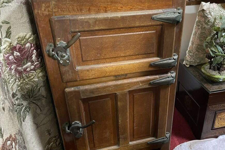 大型家電の木製冷蔵庫。厳密には昭和よりも前から販売展開されていますが、若者目線では「昭和レトロアイテム」に該当することがあります。