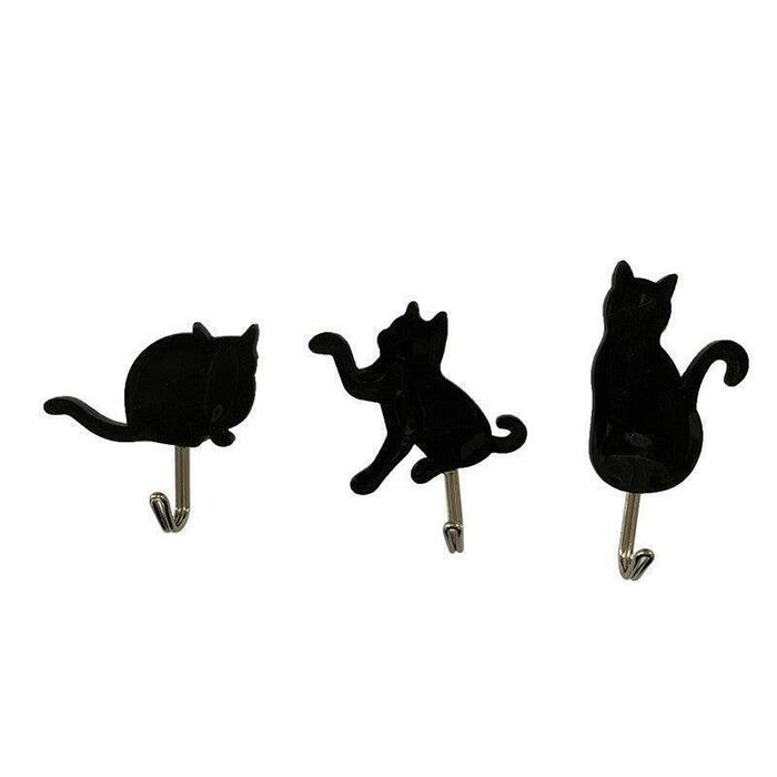 こちらは、黒猫たちがかわいらしいフックです。3つセットで110円(税込)です。3つすべてで、猫のポーズが異なっています。