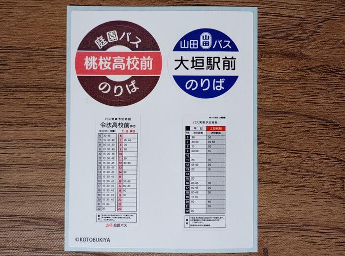 2. 「ミニチュアバス停の看板」は時刻表と行き先表示が2種類セットになっています