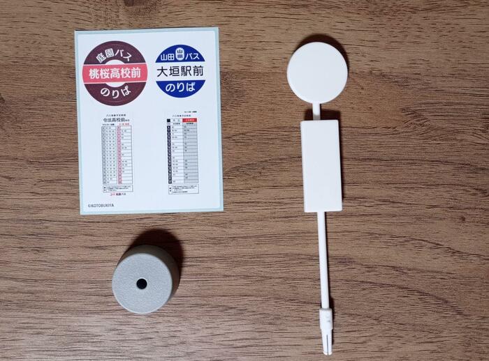 「ミニチュアバス停の看板」は、以下の3つがパッケージの中に入っています。