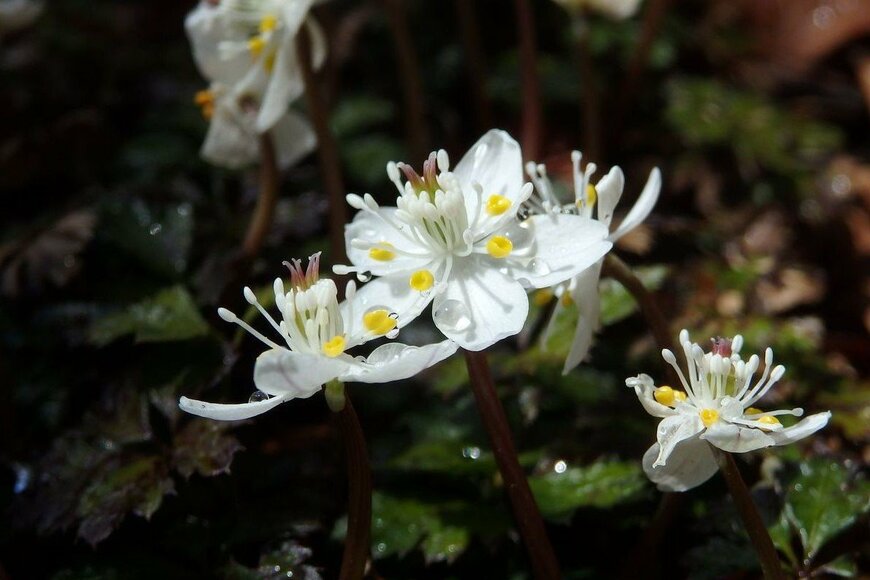 バイカオウレンはウメの花に似た白い花を咲かせる多年草。山野草に分類され、半日陰の湿ったところが生育に適しています。花だけでなく、ギザギザの繊細な葉もオシャレです。※参考価格:800~1000円前後(3号ポット苗)