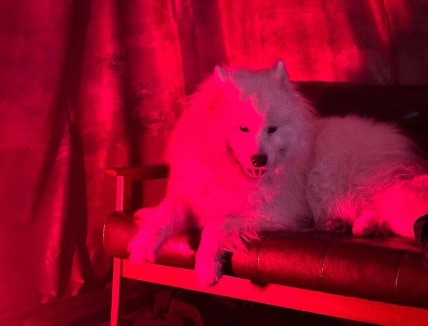 「赤い部屋」で佇むサモエド犬の姿がX(旧Twitter)で注目を集めています。