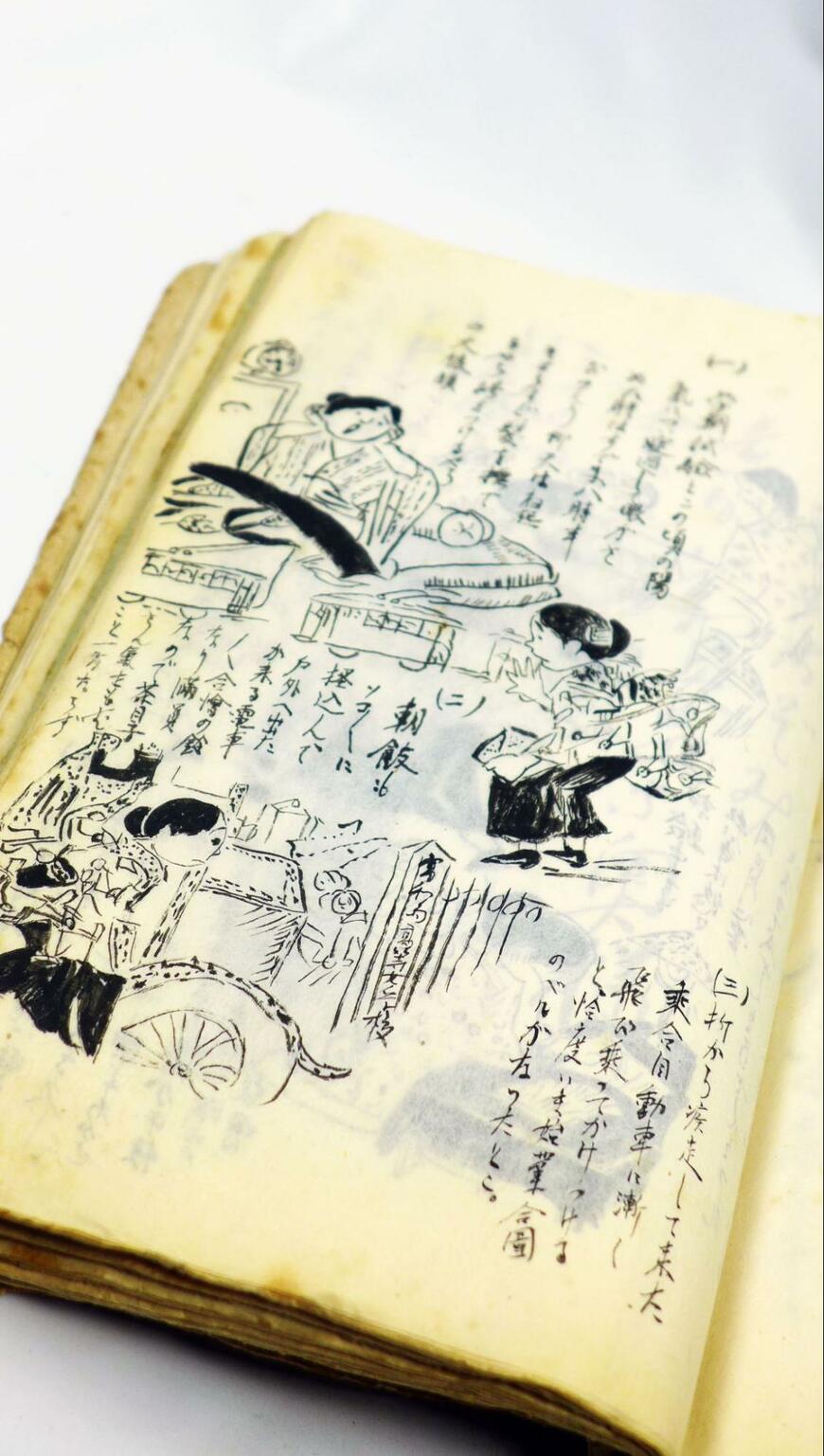 「漫画・イラストの多くは、少女画報などの当時の雑誌の模写やパロディが多いと思われますが、オリジナル性の高そうな物もあります。詩歌は学内の学友の様子、風景、草花を詠んだような物も多いです」とのこと。
