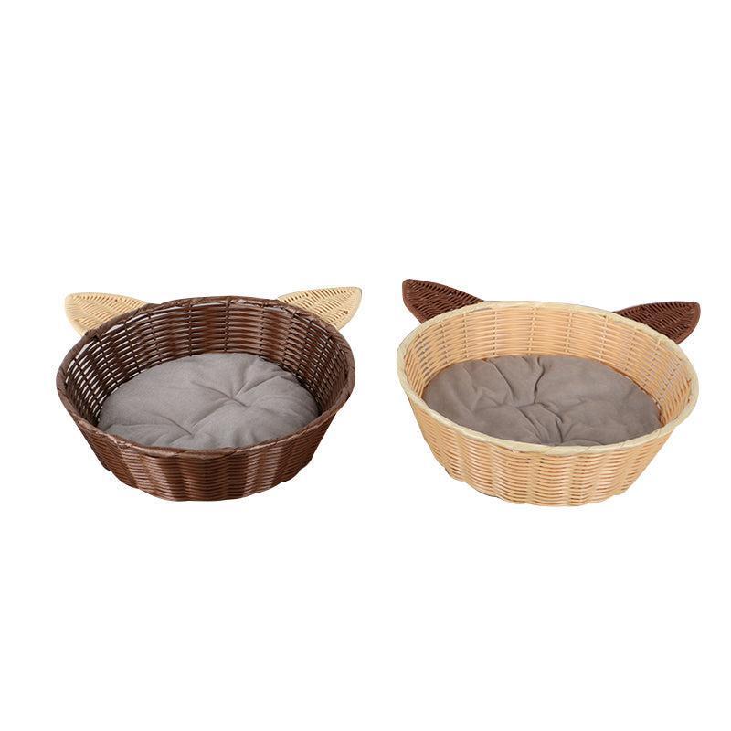 ラタン風のPP素材でできたベッド「PP素材ペットベッド(ネコ型、35cm)」です。ベッドに猫耳がついているかわいらしいアイテムです。
