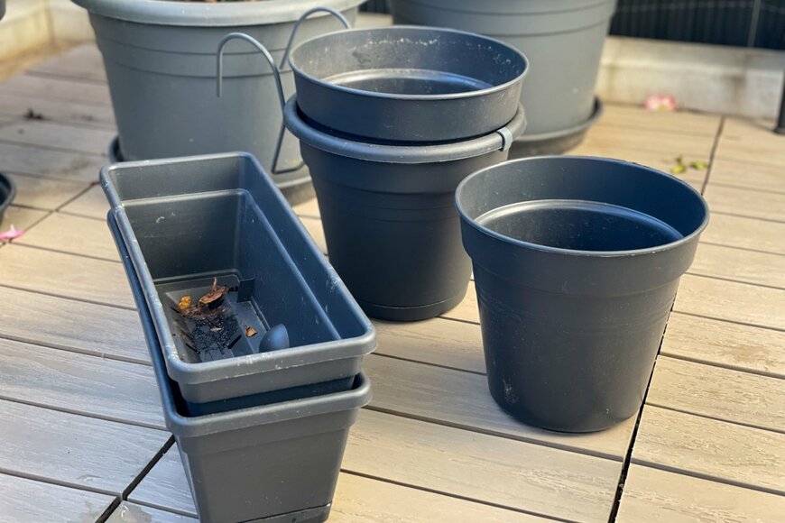 鉢に付着した土を洗い落とし、乾かしてから風通しのよいところに保管します。そのまま地面に置いて保管しないようにしましょう。