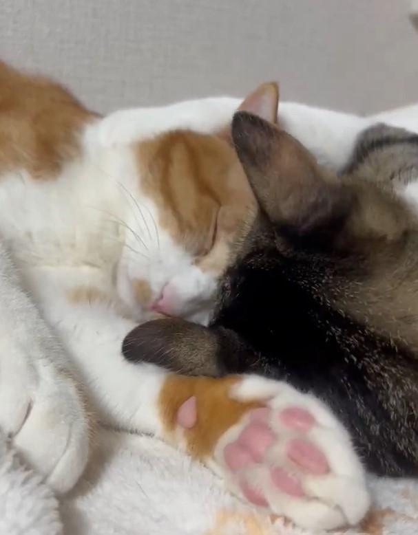 踏んだり蹴ったりされても一緒に寝たい意志が強いきなこ #猫 pic.twitter.com/vjsd3iqkEJ