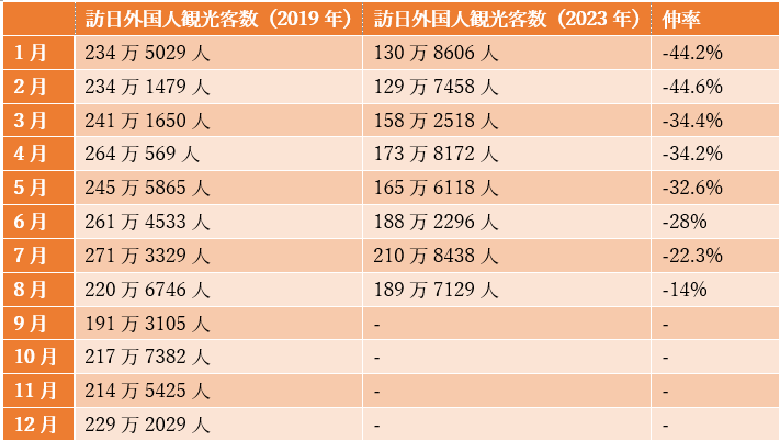 記事執筆時点では、2023年9月から2023年12月のデータはまだ発表されていませんでした。2023年の年末にはインバウンドがどのくらい復活しているのか、今から気になりますね。