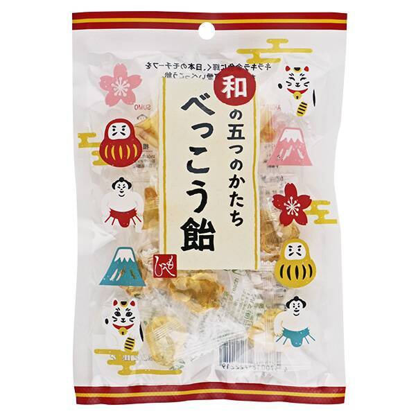 富士山、招き猫、だるま、さくら、お相撲さんの形をしたべっこう飴の詰め合わせです。とてもかわいらしいパッケージのなかにキラキラと金色に輝く飴が入っており、大人も子どももテンションアップ!飴職人による直火炊き製法でつくられているため、味も間違いありませんよ。