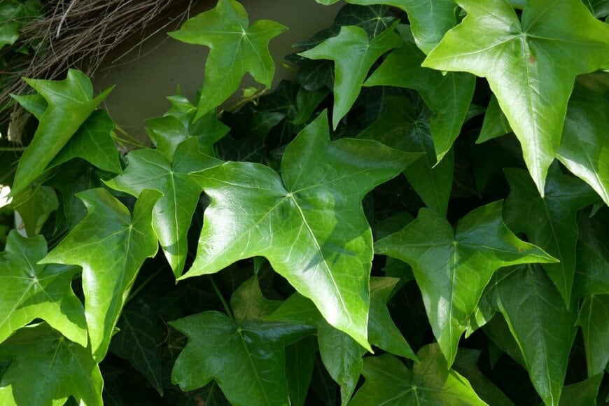 ヘデラは定番のリーフプランツのひとつ。品種が豊富なので、メインの花に合う形や色、模様を選ぶとよいでしょう。斑入りの品種はホワイトが際立ち、冬らしい雰囲気です。
