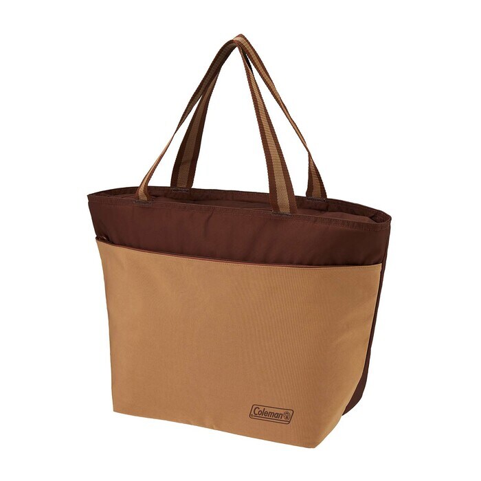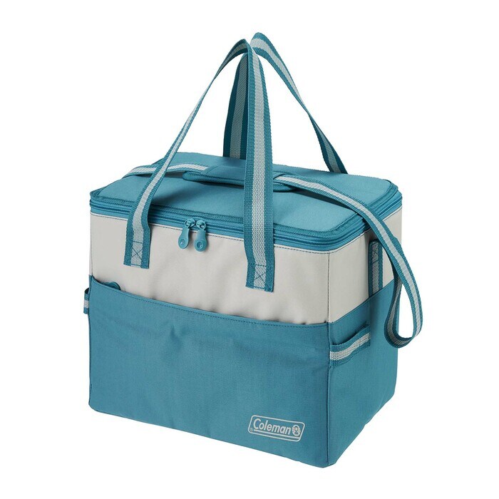 ボックスタイプのクーラーバッグ。ソロキャン、日々の買い物にぴったりのサイズで使いやすいです。手提げ、肩掛けどちらにも対応。表地にはポケットも付いており、買い物メモやスマホを入れる際に便利です。コールマンのロゴ入りのエコバッグが付いています。