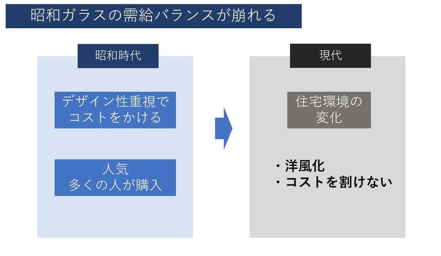 洋風化していったことや昭和ガラス自体にコストがかかることが要因だと考えられます。