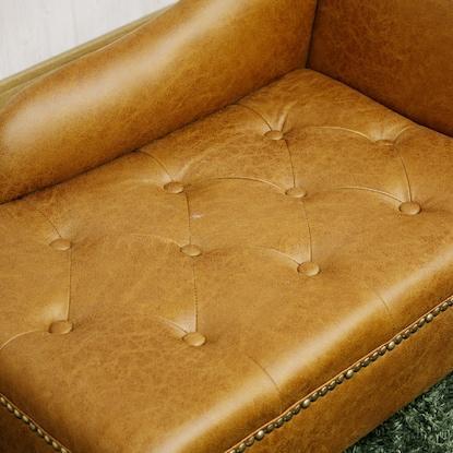 連結鋲がレトロでゴージャス感があります。座面部分には、ボタン締め加工がされています。