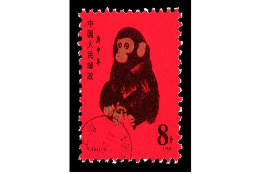 文化大革命直後に発行された切手は大変貴重で、消印があったとしても高額で取引されています。有名な中国切手は「毛主席の 長寿を祝う」「赤猿/子ザル」などです。赤猿の場合に、金粉がくすみなく輝いているかどうかなども査定のポイントです。
