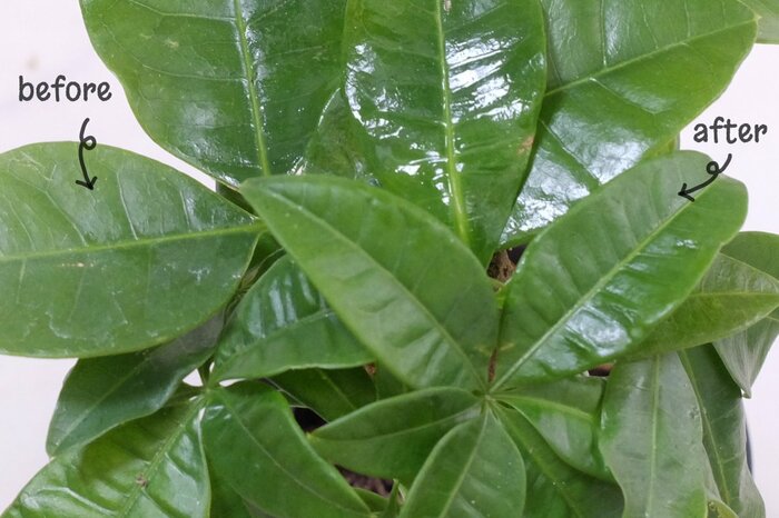 3.2 小さなパキラの葉にリーフクリーナーを使ってみました