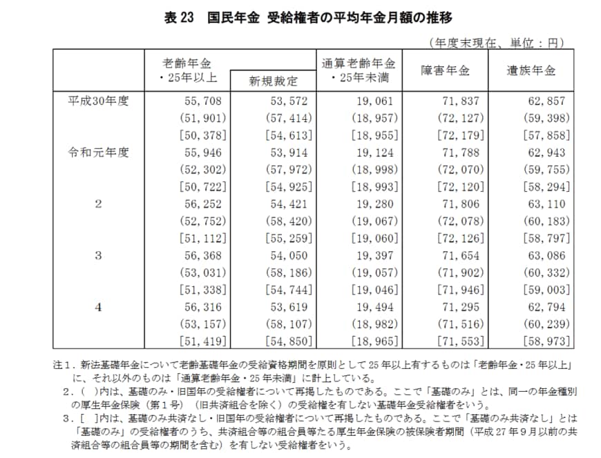 上記によると、国民年金の受給権者の平均年金月額は5万6316円でした。
