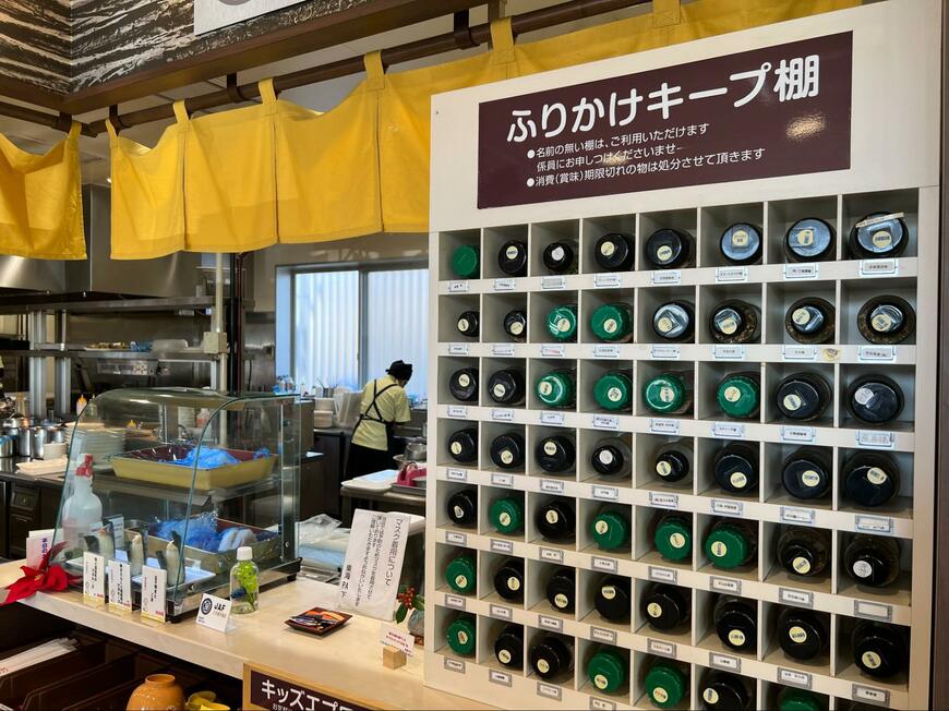 東海パーキングエリアのフードコートで目撃された「ふりかけキープ棚」がX上で話題になっています。
