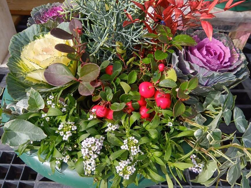 2. 【ハボタンの寄せ植えパターンA】赤い実が映える寄せ植え