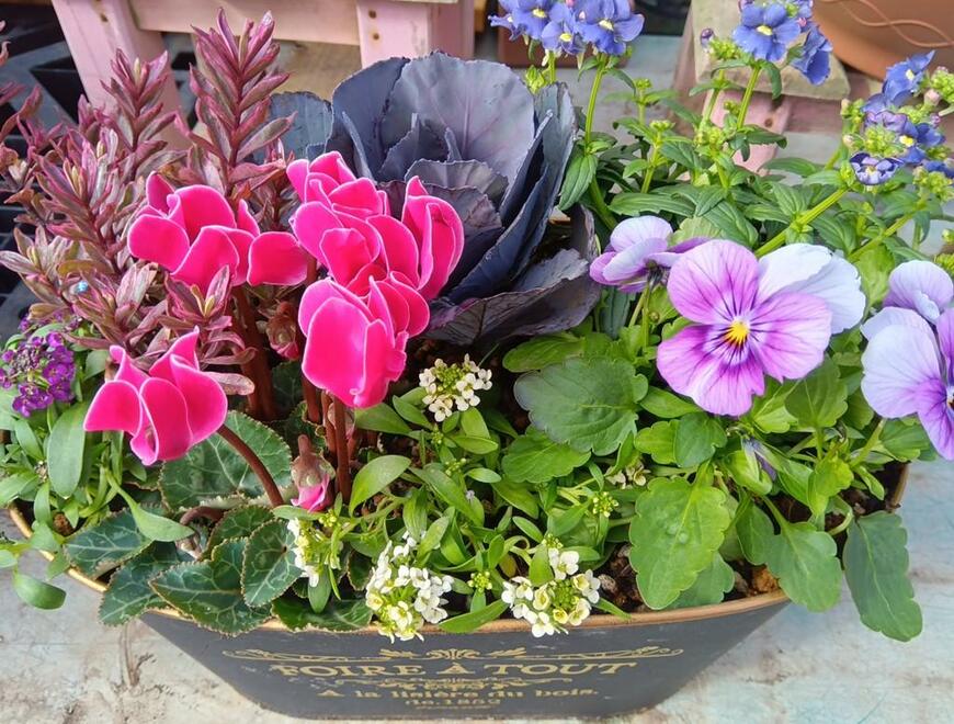 ハボタンと冬の草花を組み合わせて、オシャレな冬の寄せ植えを作ってみませんか。