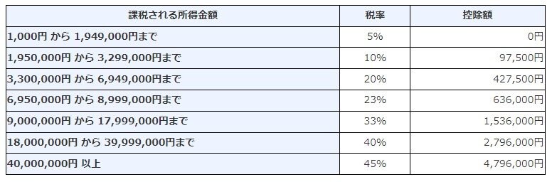 所得税率は、年収から控除分を差し引いて残った金額(課税所得)にかかる税率です。