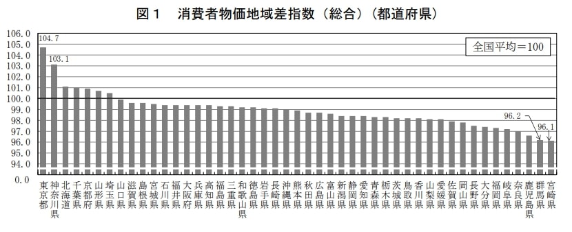 総務省が2023年6月30日に発表した「消費者物価地域差指数」によると、2022年4月の物価水準は都道府県によって差がありました。