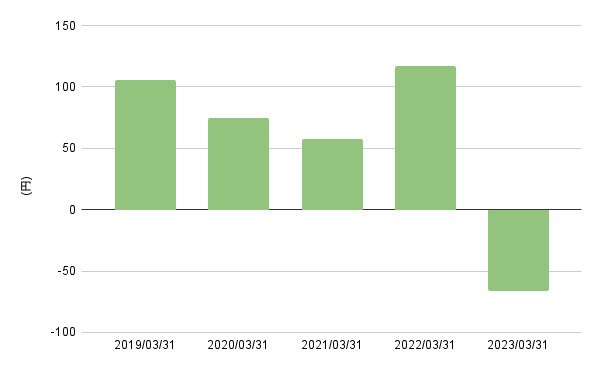 - ~2023年3月:▲65.84円