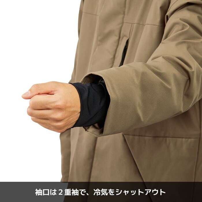- 素材:表地・ポリエステル100%、リブ部分・ポリエステル90%、ポリウレタン10%、中わた・ポリエステル100%、身頃上部中わた・ダウン35%、ポリエステル50%、アクリル10%、フェザー5%、裏地・ポリエステル100%