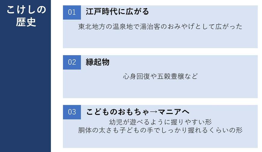 こけしは、江戸時代に東北地方の温泉地で湯治客のおみやげとして広がったとされるこけし。