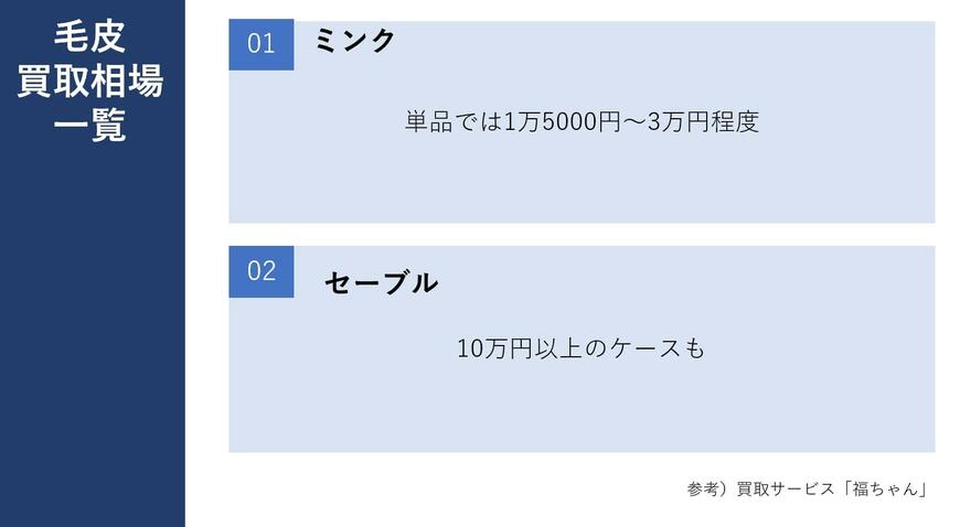 また養殖より天然のミンクのほうが、査定では高く評価されます。最高級ランクの品は、上記より高い金額で買取されるケースもあります。