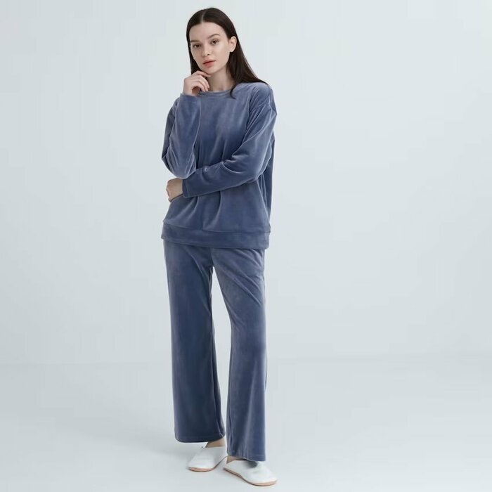 生地がなめらかで肌ざわりも良く、やさしく包んでくれるような着心地が人気のルームウェア。ベロアの素材で暖かいと口コミでも評判です。