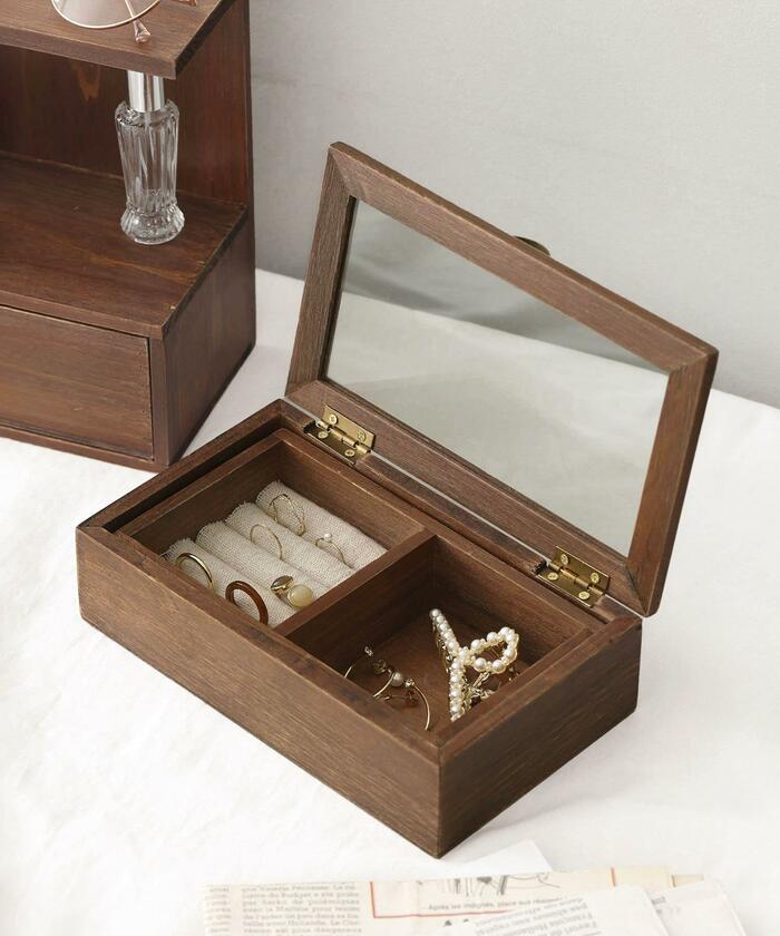 アンティークショップで販売されていそうな、レトロ感あるデザインです。リングやピアス・イヤリング、腕時計等をおしゃれに収納することができます。