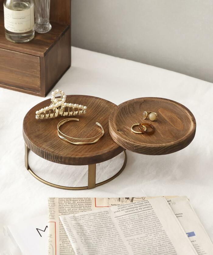上段のトレーを階段状にスライドさせて、アクセサリーや腕時計等をおしゃれに飾ることができます。