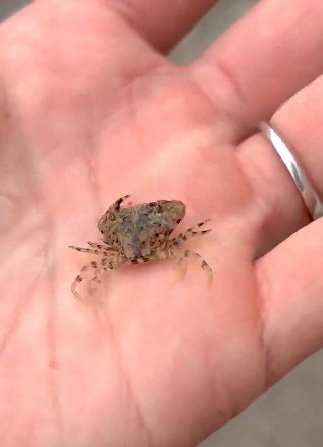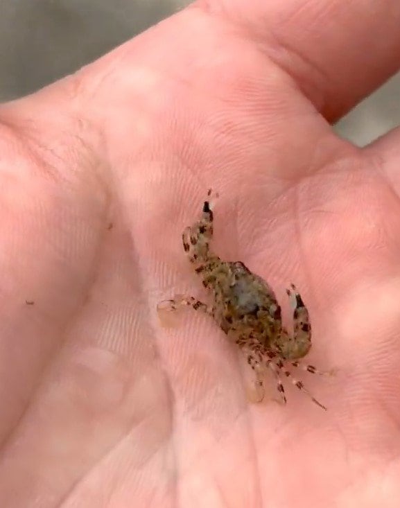 「まばたきしてる間に起き上がるカニ」そんなコメントとともに投稿されたのは一本の動画でした。写っているのは手のひらに乗る小さな「カニ」です。