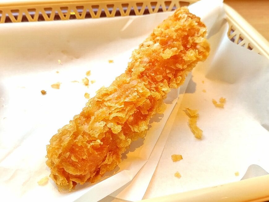 さっそく頬張ってみるとやや大きめな衣がカリカリとした食感。
